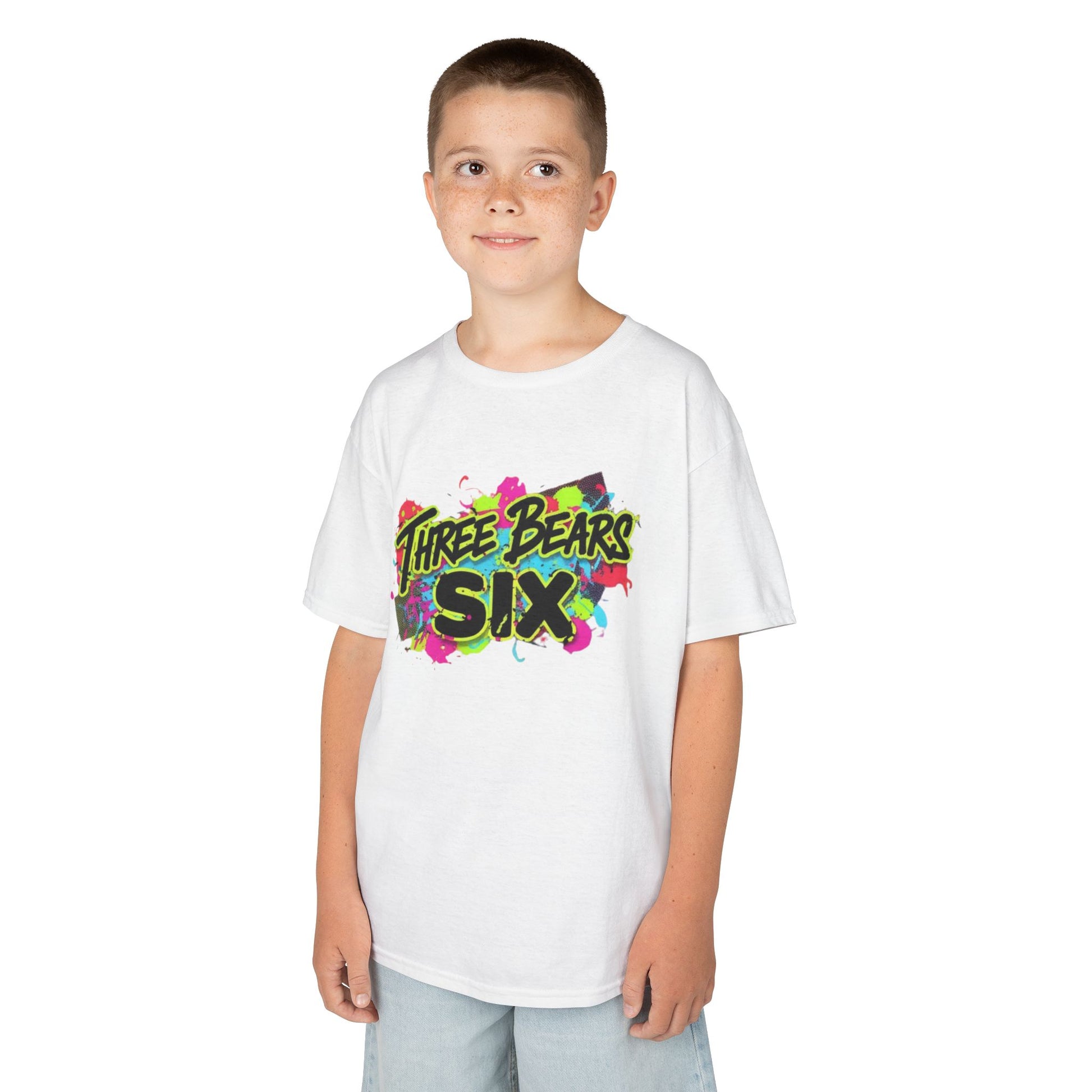 The bold graffiti-style “Three Bears Six” artwork pops with neon splashes for an energetic, mischievous vibe — perfect for birthday parties, after-school hangouts, weekend adventures, and everyday outfits that need a little extra personality.