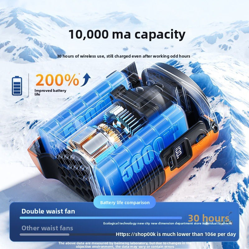Stay cool anywhere. This portable, wearable waist fan delivers refreshing hands-free airflow for outdoor work, commuting, travel, camping, festivals, and everyday heat relief. USB-rechargeable, lightweight, and made for life on the go.