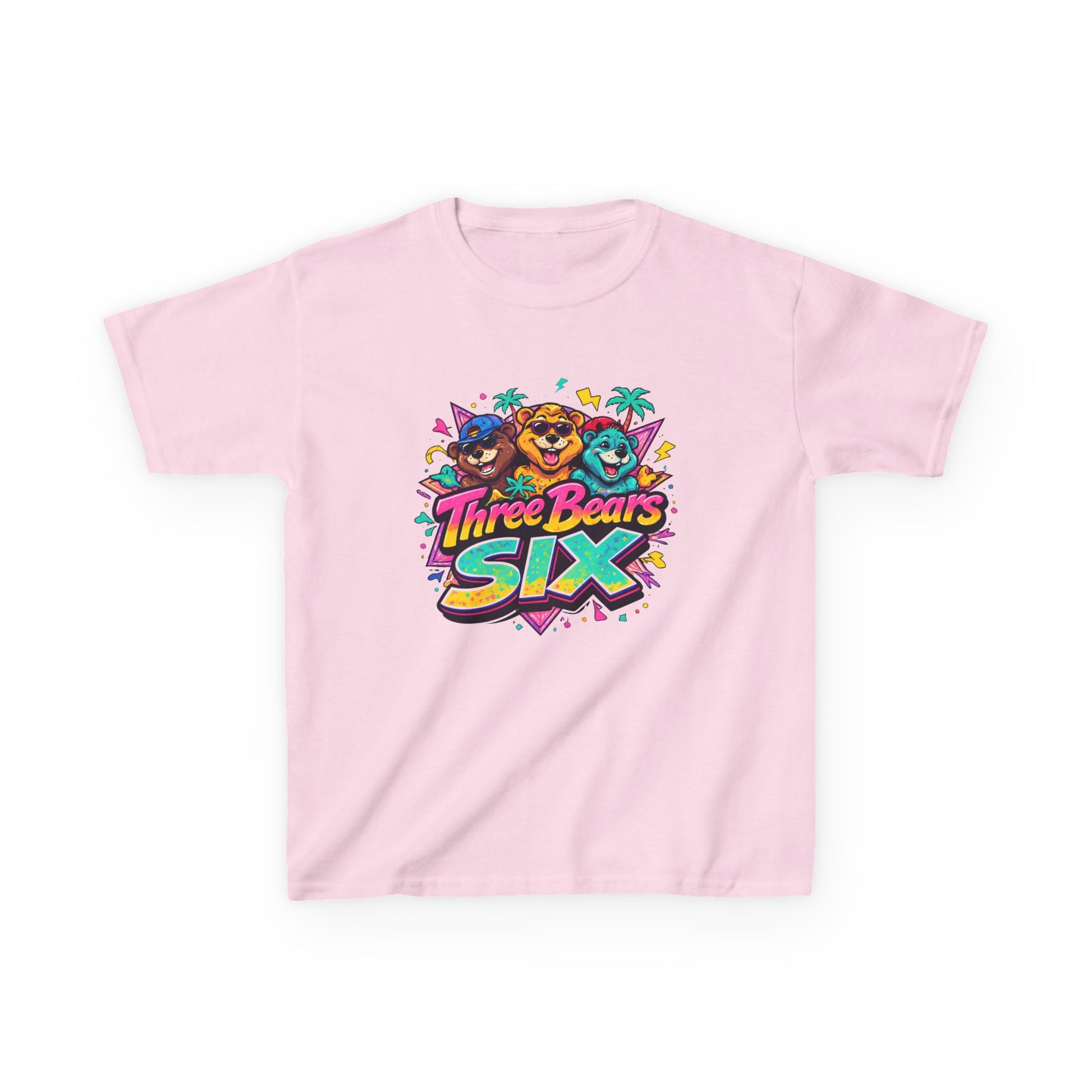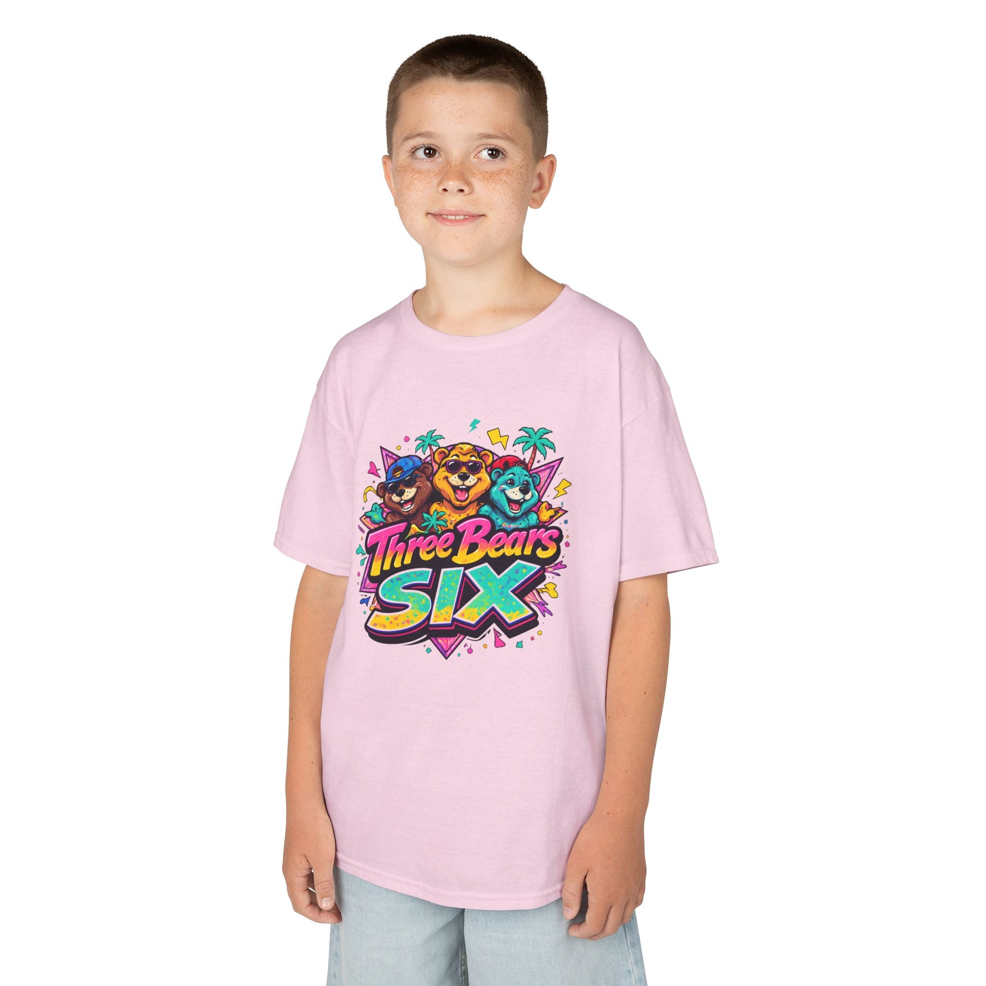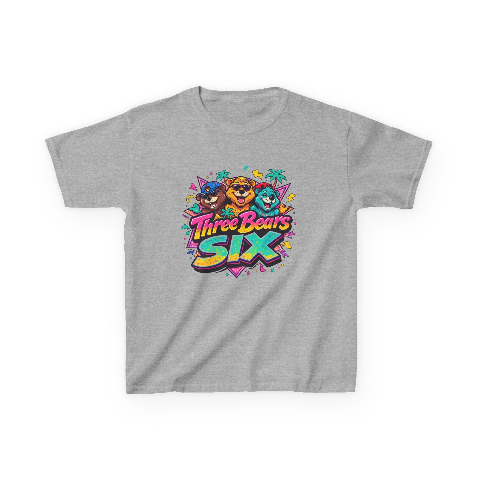 Front and centre, the retro-style chest graphic features three smiling bears and a bold “SIX” — playful, upbeat, and easy to pair with shorts, jeans, or layered under a hoodie when it cools down.