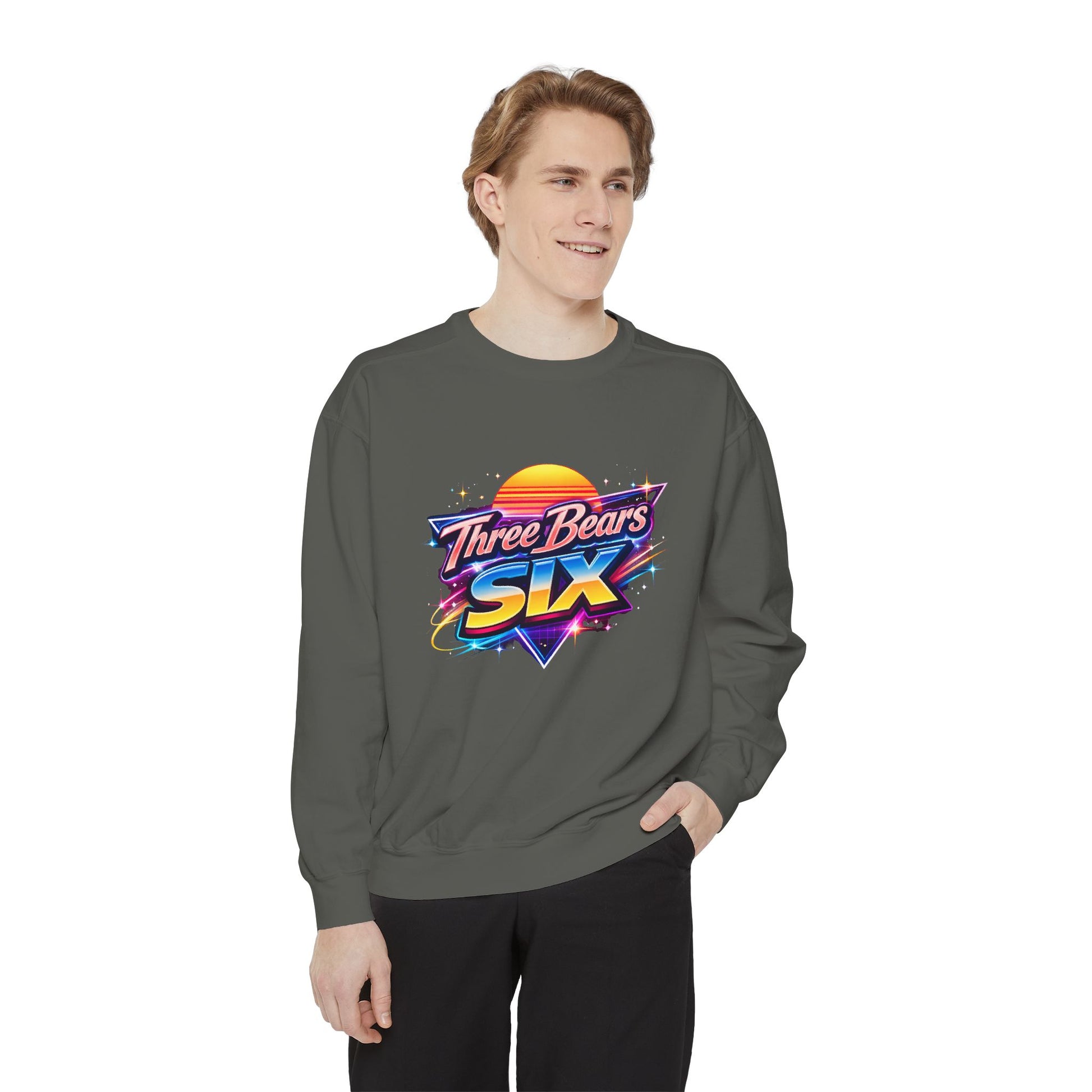 Three Bears Six Retro Logo Sweatshirt — 80s Sunset Graphic Pullover